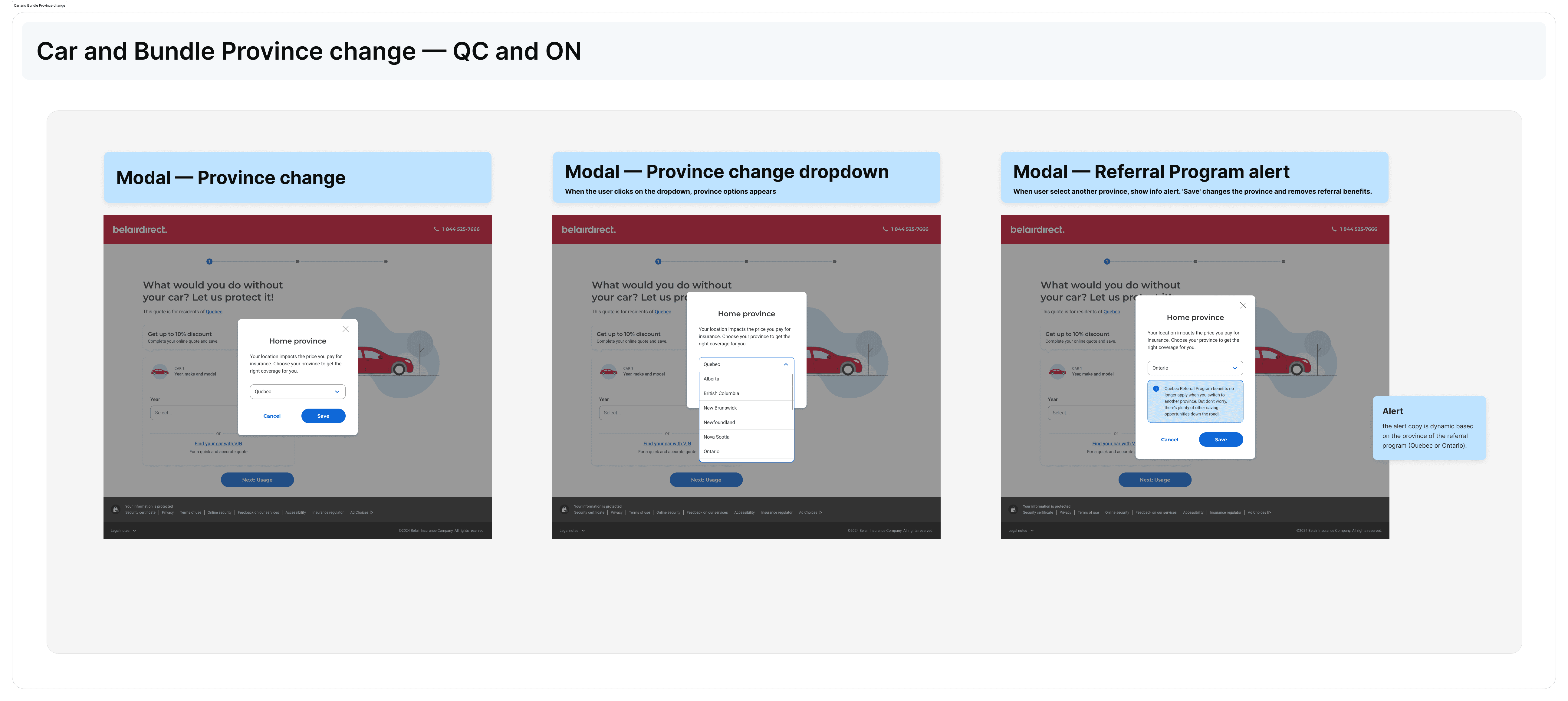 The province change is not a modal but it is a field in the form. There is also loader that indicates new quote is generated for user.