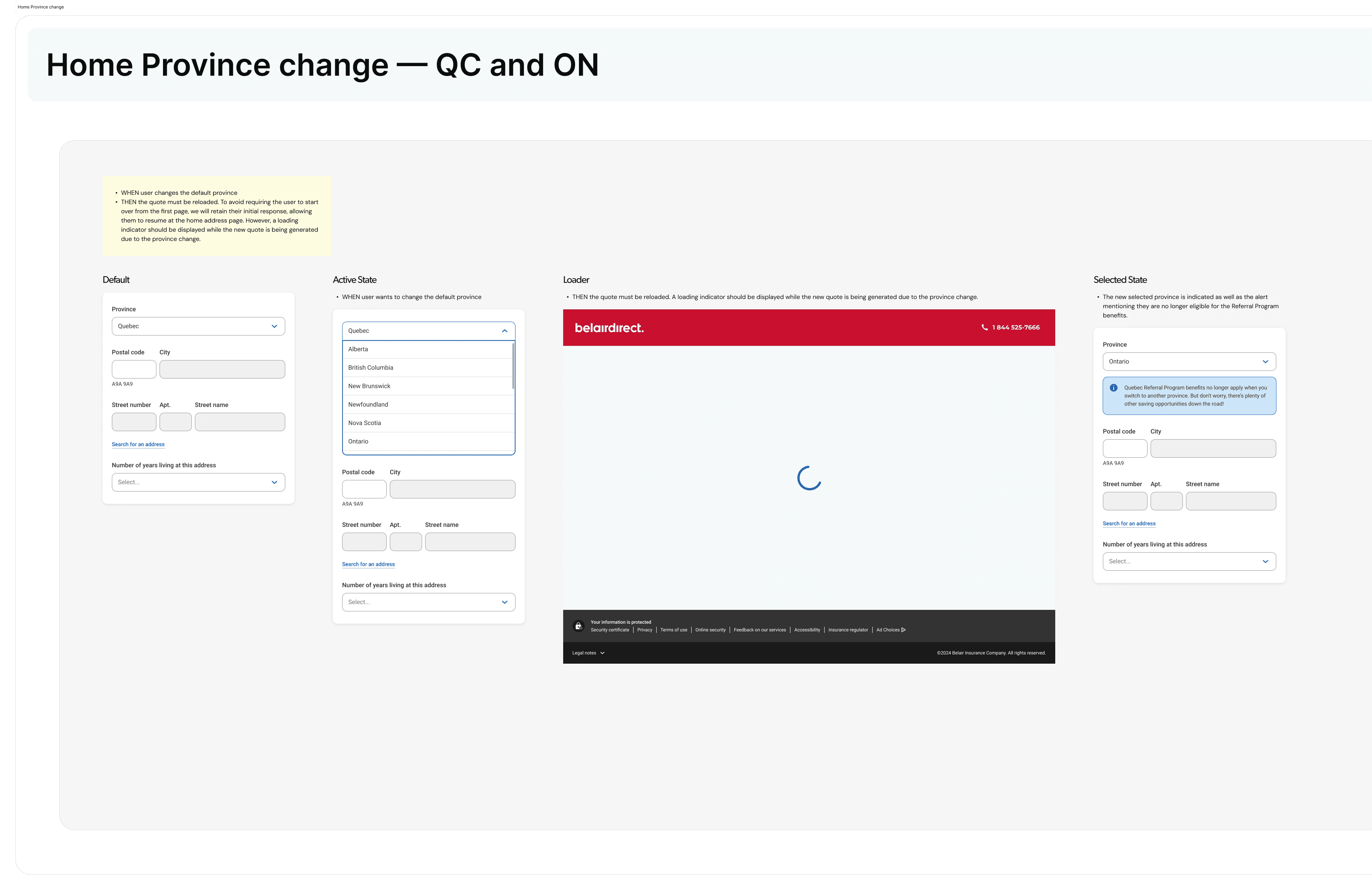 Working with another designer (Jade), my task was to identify how we would communicate to user that referral program benefit will not apply if province change occurred.