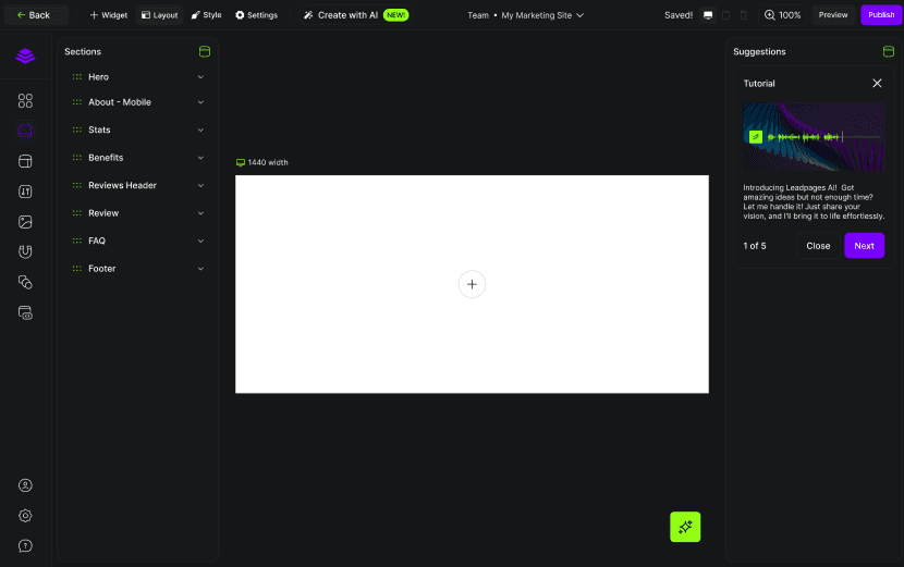They were rebranding at the same time with more polished and established design system with AI feature integration for faster landing page creation for their users.