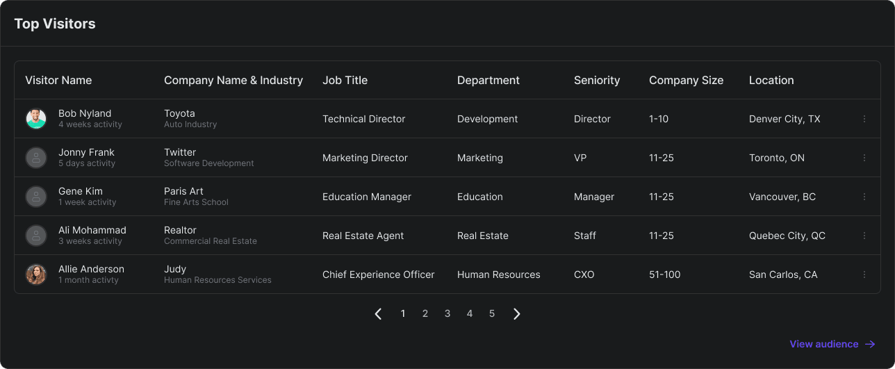 Audience - leads & visitor exploration
