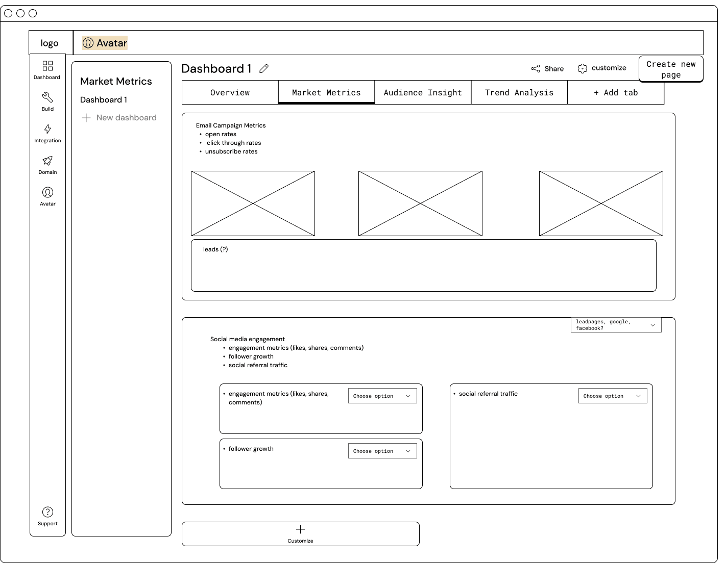 Data analytic dashboard for marketing landing page with customer.ai integration