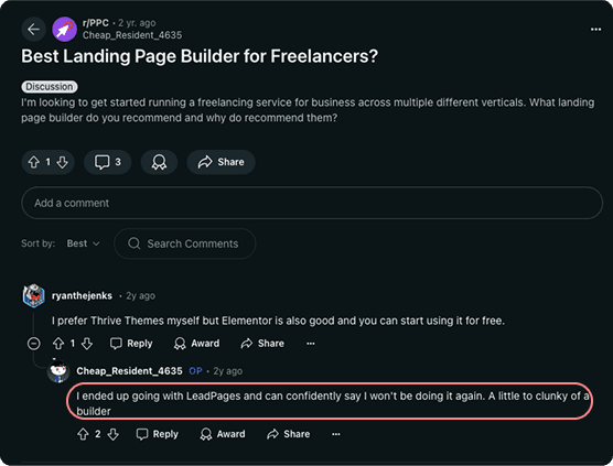 User finds Leadpages to be clunky and preferred the direct competitor, Unbounce.
