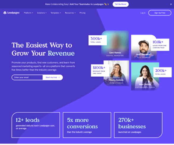 Leadpages targets marketing professional or businesses to create landing page quickly with focus on conversion and leads for their business.